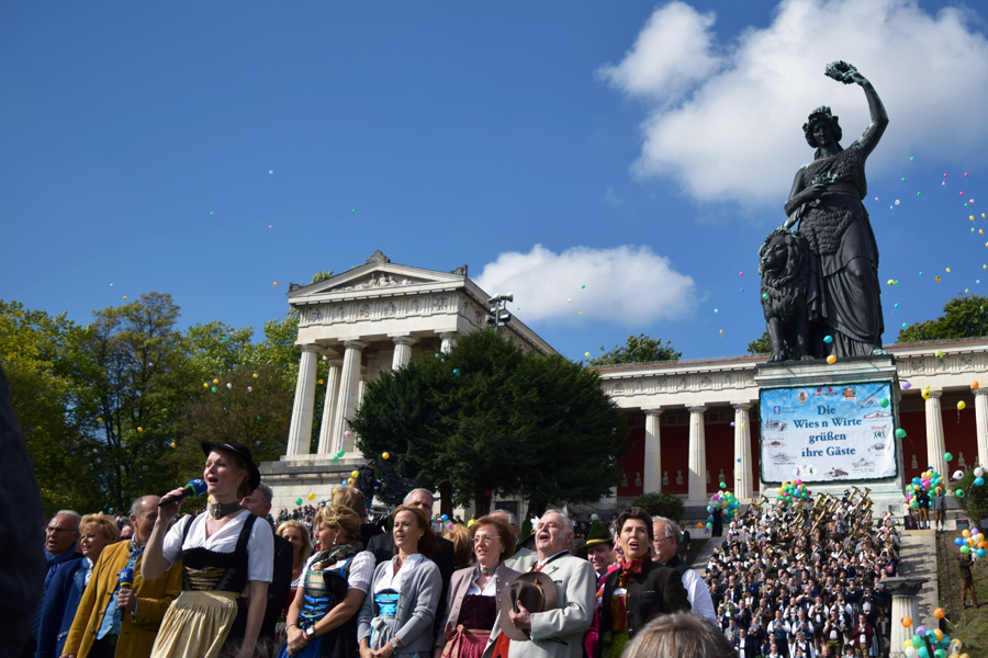 Neben Blechbläsern, Trommlern und Alphörnern, sorgten unter anderem auch die wechselnden Dirigenten für Stimmung und Laune während des Konzerts. Beim Platzkonzert gibt es nämlich keine Ausreden. Hier muss jeder ran, der von den Wiesn-Wirten auf die Bühne gerufen wird. Ohne Rücksicht auf die (nicht vorhandene) musikalische Vorgeschichte, bekommt die Münchner Lokalprominenz den Taktstock in die Hand gedrückt und wird aufgefordert das große Musikeraufgebot zu dirigieren. Dieses Jahr hat es unter anderem den Münchner Oberbürgermeister Dieter Reiter und den Wiesn-Chef Josef Schmid getroffen. Weitere Dirigenten auf dem Pult waren u. a. Stadtrat Manuel Pretzl, Polizeipressesprecher Wolfgang Wenger und Juniorchefin des Hofbräu-Zelts Silja Schrank-Steinberg. Bei Klassikern wie dem „Deutschmeister Regimentsmarsch“, dem „Von der Thann Marsch“ oder „Alte Kameraden“ freute sich selbst die Sonne mit den begeisterten Zuschauern. Die Musiker in Tracht mit Instrumenten in der Hand und an den Lippen gaben ein traumhaft idyllisches Bild von bayerischem Heimatfeeling ab, das nur noch durch das große Finale übertroffen werden konnte. Zum Abschluss des Standkonzerts stiegen unter den Klängen der Bayern-Hymne zahlreiche bunte Luftballons rund um die Bavaria in Richtung blau-weißer Himmel. Ein durch und durch gelungenes Konzert mit traumhaftem Ambiente und beeindruckenden musikalischen Darbietungen. Das traditionelle Standkonzert am Fuße der Bavaria – ein echtes Highlight mit Kultcharakter.